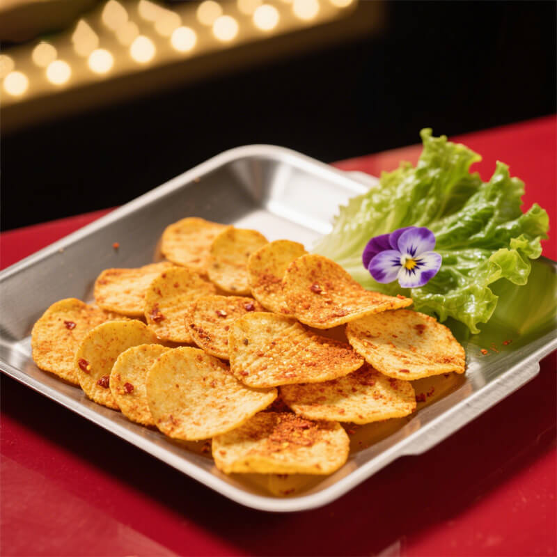 调味用的 “辣参” 辣椒产自陆良龙海山区,这里红壤富含硒元素,辣椒成熟时辣度值达 3.5 万 SHU,却带着独特的 fruity 香气。搭配会泽县产出的 “大红袍” 花椒,其麻味物质羟基 -α- 山椒素含量达 7.2%,与辣椒素形成协同。当地匠人还会在调料中加入千分之一的宣威火腿粉末,利用其游离氨基酸提升鲜味,这种 “咸鲜辣麻” 的复合味觉,构成了陆良土豆片的标志性风味。